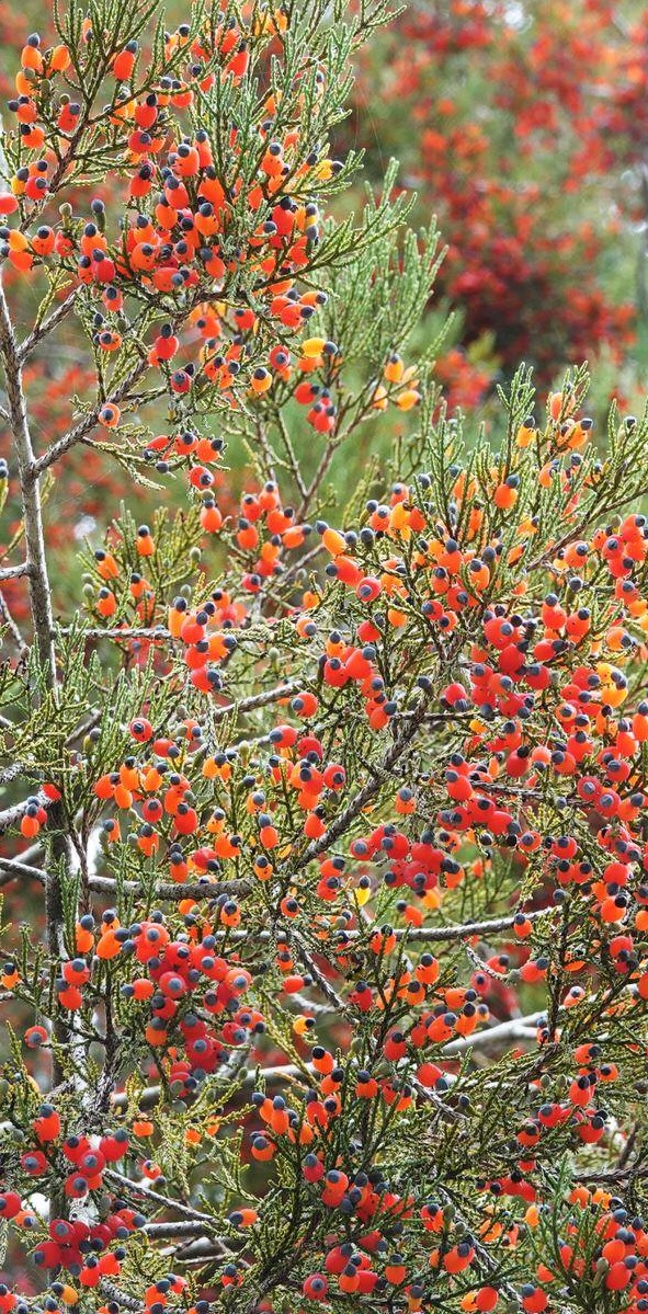 The tītoki fruit is ripe, and the rātā is red in the eighth month.